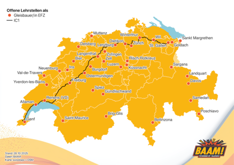 Aber wusstest du, dass es nicht nur Seilbahnregionen, sondern auch Eisenbahngegenden gibt? Man könnte denken: Die Bahn ist überall in der Schweiz. Jedoch sind die meisten Lehrstellen im Gleisbau entlang der grossen Eisenbahnlinien, Linie des IC1 zum Beispiel.