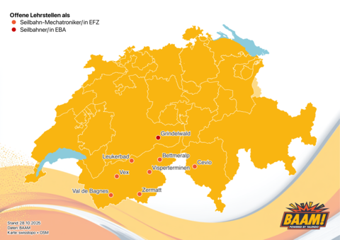 Oder dass es Seilbahn-Mechaniker/innen nur in den Bergen gibt, versteht sich auch von selbst (als wir unsere Daten ausgewertet haben, waren die meisten offenen Lehrstellen im Wallis, aber natürlich gibt es auch immer wieder einige in anderen Bergkantonen).