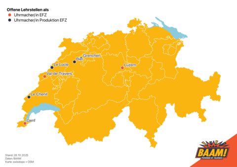 Bei manchen Regionen ist es klar, wofür sie stehen. Lehrstellen für Uhrmacher/innen findet man (fast) nur im Uhren-Valley der Schweiz, also entlang des Juras in den Kantonen Bern, Neuenburg und in der Waadt. Wer in der Uhrenbranche arbeiten will, muss hierher.
